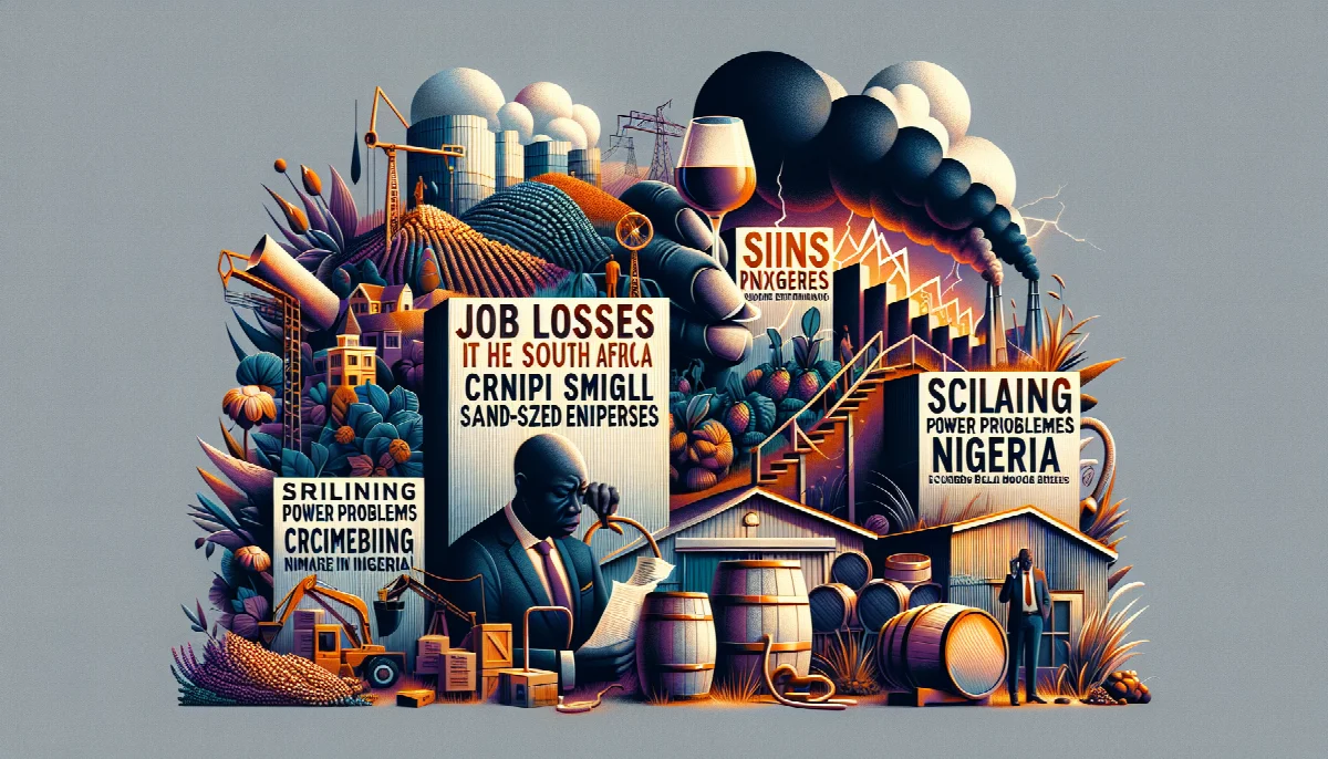 South Africa's wine industry warns of job losses from proposed sin tax increases, while Nigeria grapples with power supply failures crippling SMEs and mortgage market exclusion affecting earners below N500,000 monthly.